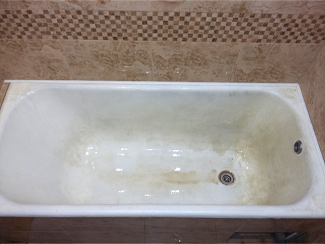 Причина: Неправильная эксплуатация ванны. Для мытья ванны использовали средства, содержащие сильные кислоты, что и привело к порче верхнего слоя эмали.