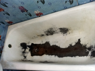 Причина: Неправильная эксплуатация ванны. Для мытья ванны использовали средства, содержащие сильные кислоты, что и привело к порче верхнего слоя эмали.