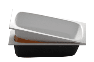 Изготавливается вкладыш из двухслойного листа, верхний слой – это сантехнический акрил (эстетический вид), а нижний слой состоит из АБС-пластика (усиливающий слой).